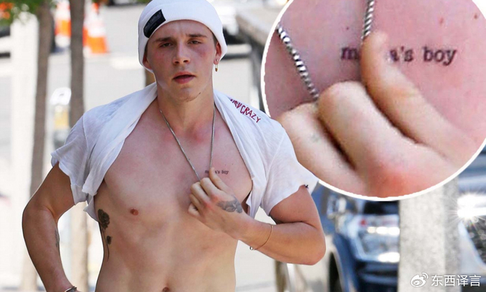 在除掉“爸爸”字样的刺青前,布鲁克林也被发现弄掉了对母亲维多利亚·贝克汉姆的致敬。那句“妈宝男”(mama's boy),被其他的图案给取代了。目前尚不清楚他左手臂上的一个小小的心形纹身是否还在,那也是为了致敬维多利亚而纹的。